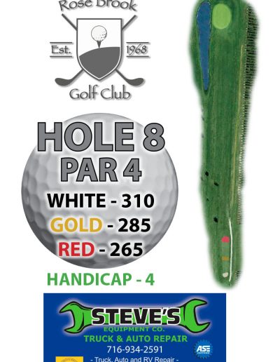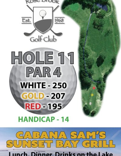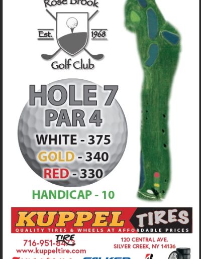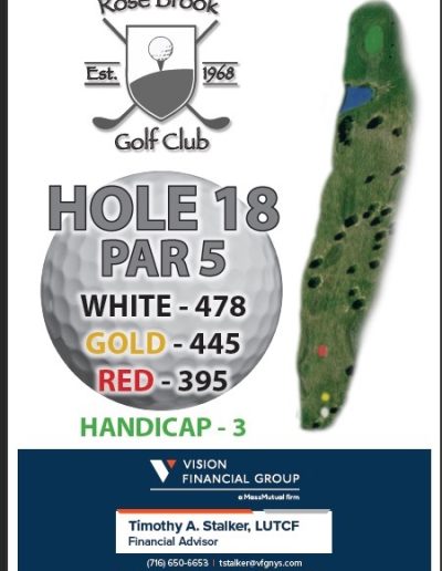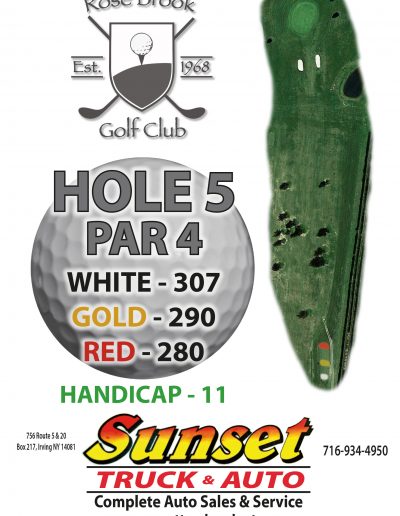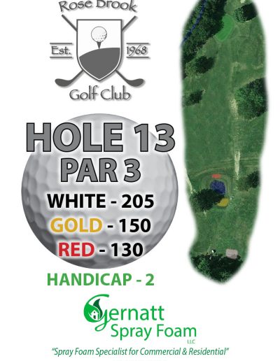 Rose Brook features many challenging holes and picturesque scenery that is highlighted by the Rose Brook Creek Gorge running through and coming into play on many holes. It also features 12 ponds with a few traps scattered throughout. The length is not daunting. But, with 5 par 5’s 9 par 4’s and 4 par 3′ including one over the 100′ deep gorge and one over a huge pond, from a picturesque elevated tee, Rose Brook is just challenging enough for the seasoned golfer, but not too severe to ruin a good vacation round of golf.